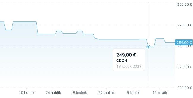 Hintahistoriaan pääsee aina käsiksi kätevästi. Se on käytettävissä tuotesivuilla näet niin tietokoneella kuin puhelimella kun helposti, miten hinta on muuttunut ajan myötä.