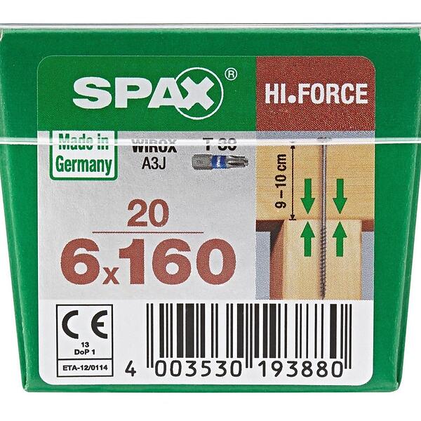 SPAX T-Star Washer Steel Screw (Dia)6mm (L)160mm, Pack Of 20
