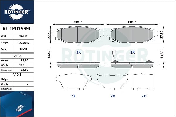Rotinger Bromsbeläggssats, skivbroms RT 1PD19990