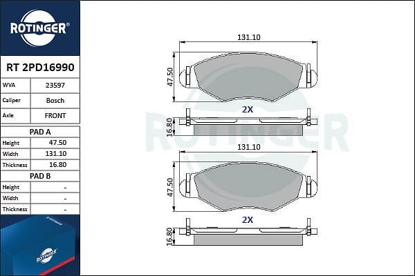 Rotinger Bromsbeläggssats, skivbroms RT 2PD16990