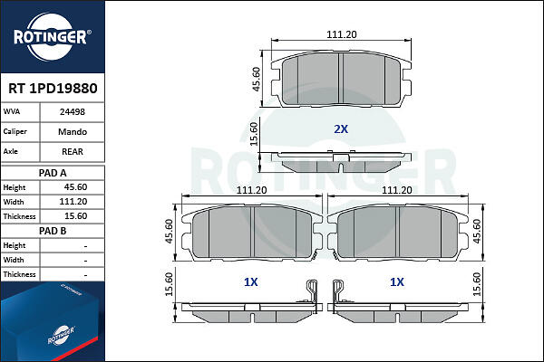 Rotinger Bromsbeläggssats, skivbroms RT 1PD19880