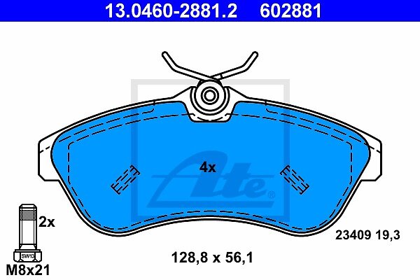 ATE Citroen Bromsbelaggssats skivbroms 13046028812