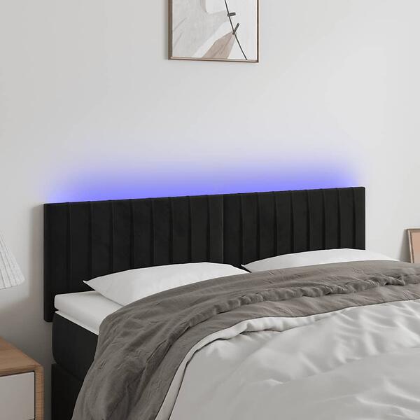 vidaXL Sängynpääty LED svart 144x5x78/88 cm sammet