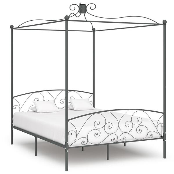 vidaXL Himmelsäng grå metall 160x200 cm