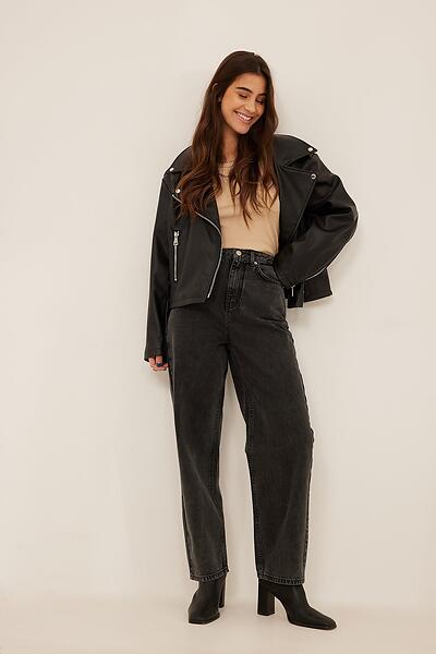 NA-KD Trend Barell jeans med vida ben (Naisten)