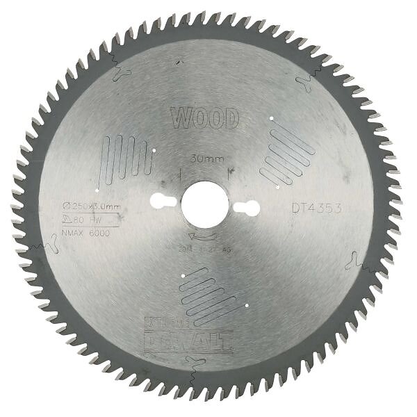 Dewalt Sågklinga för trä DT4353-QZ; 250x30x2.2 mm; 80T