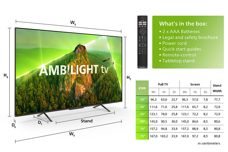 Verrattuna Philips 55PUS8108/12 55'' LED 4K UHD Ambilight TV