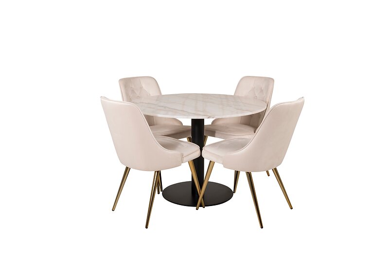 Admira Matbord 106 cm Runt Marmor med 4 st Valera Lyx Sammet