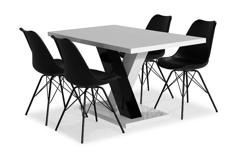 Scandinavian Choice Cesi Matgrupp 140 cm med 4 Shell Stol Valkoinen/Musta/Svart