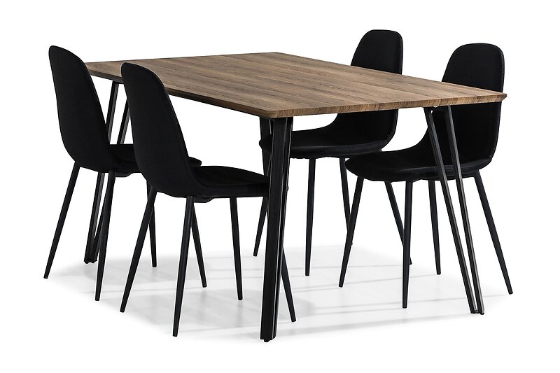 Scandinavian Choice Marcelen Matgrupp 160 cm med 4 Nibe Stol Ruskea/Svart