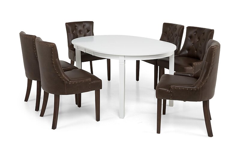 Manor House Läckö Förlängningsbar Matgrupp 150 cm med 6 Tuva Stol Valkoinen/Prun