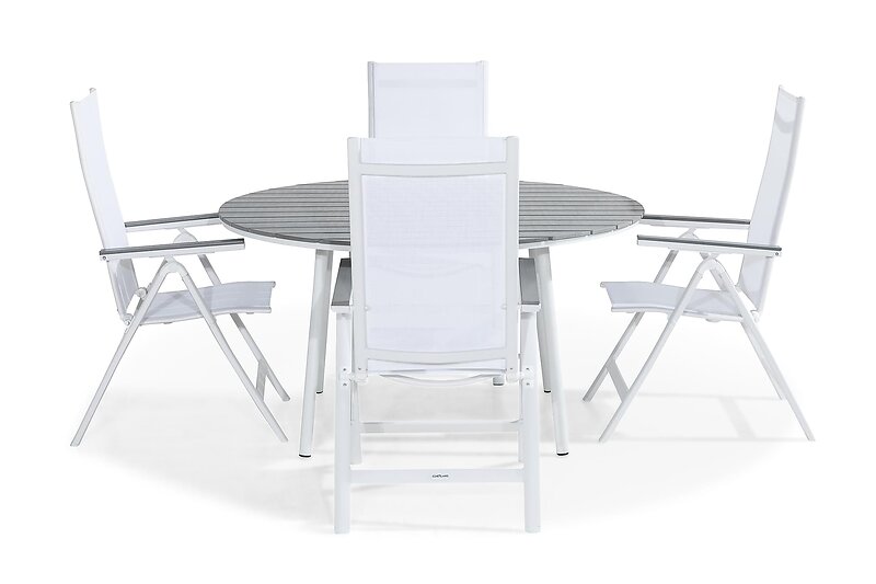 Comfort Garden Tunis Matryhmä 140 Pyöristää 4 Monaco Light Stol Valkoinen/Grå
