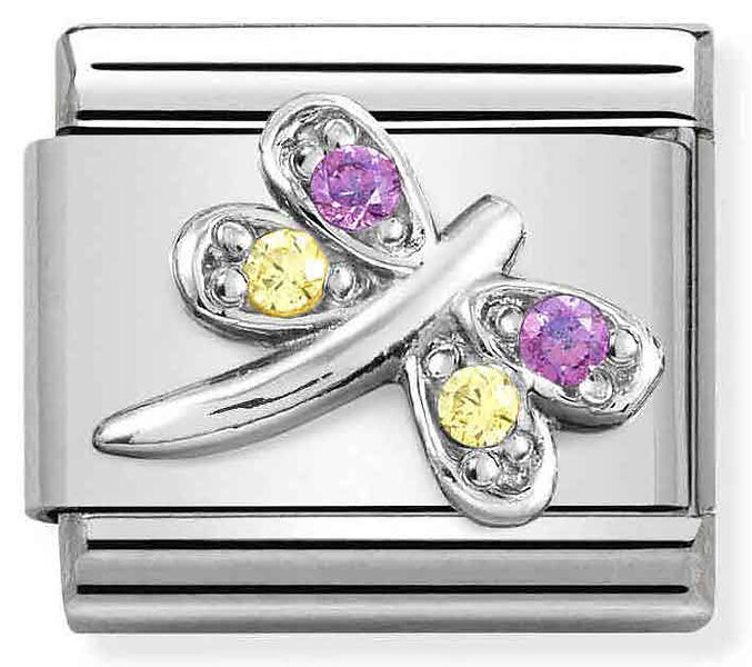 Nomination Classic SilverShine Symbols lilac and yellow Dragonfly 330304-40