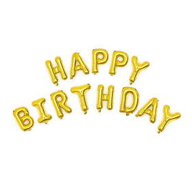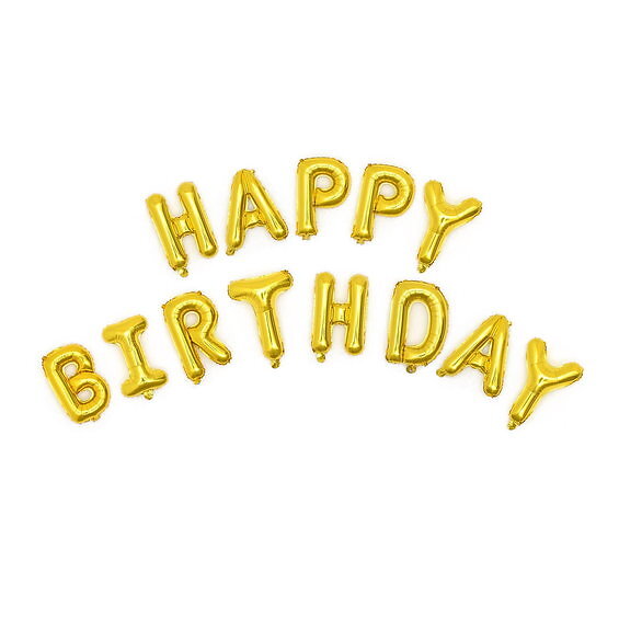 Happy Birthday folieballonger, guld – total bredd ca 270 cm
