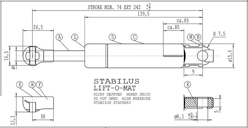 Stabilus Gasfjäder Mercedes Bak ST 2616BK