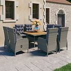 vidaXL Matryhmä för trädgården 9 delar konstrotting och akaciaträ grå