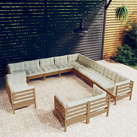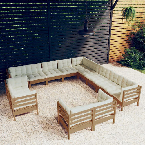 vidaXL Lounge-ryhmä med dynor 13 delar honungsbrun massiv furu