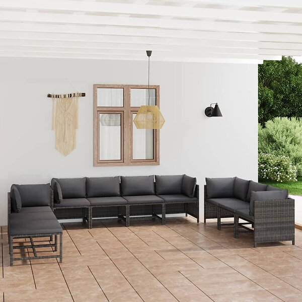 vidaXL Lounge-setti 10 osaa tyynyillä harmaa polyrottinki