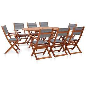 vidaXL Matryhmä för trädgården 9 delar grå eukalyptusträ och textilene