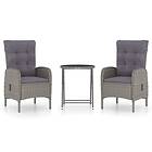 vidaXL Caféset för trädgården 3 delar konstrotting och glas grå
