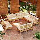 vidaXL Lounge-ryhmä med dynor 11 delar honungsbrun massiv furu