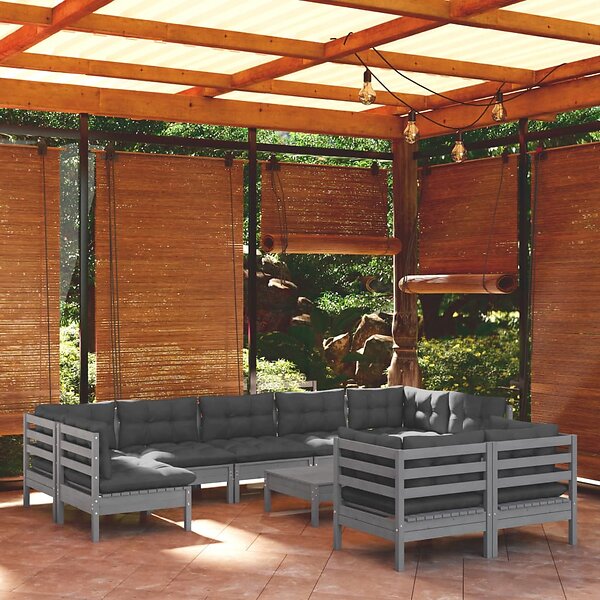 vidaXL Lounge-setti 10 osaa harmaa massiivimänty