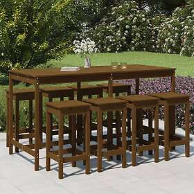 vidaXL Barryhmä för trädgården 9 delar honungsbrun massiv furu