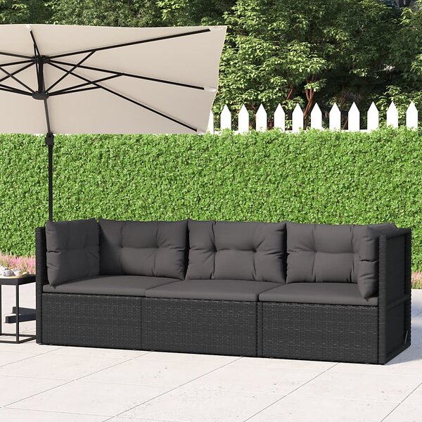 vidaXL Lounge-ryhmä för trädgården med dynor 3 delar svart konstrotting 319596