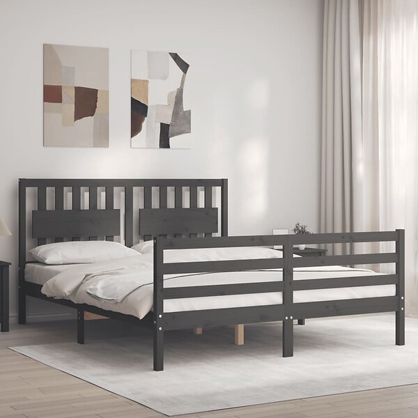 vidaXL Sängynrunko med huvudgavel grå 5FT King Size massivt trä 3194318