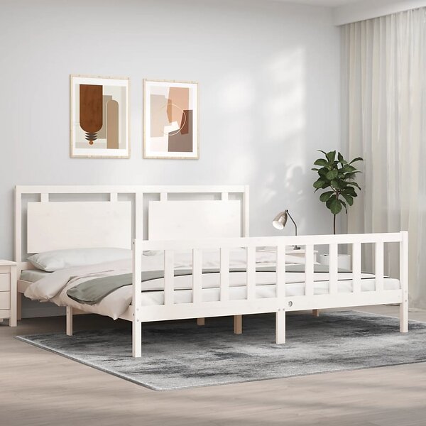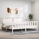 vidaXL Sängynrunko med huvudgavel vit 200x200 cm massivt trä 3192187