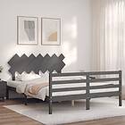 vidaXL Sängynrunko med huvudgavel grå 140x200 cm massivt trä 3195288