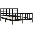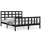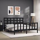 vidaXL Sängynrunko med huvudgavel svart 5FT King Size massivt trä 3192110