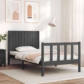vidaXL Sängynrunko med huvudgavel grå 100x200 cm massivt trä 3192938