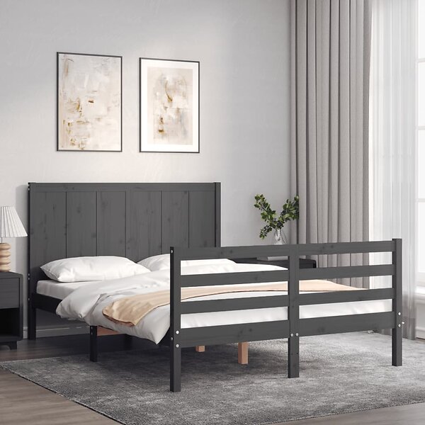 vidaXL Sängynrunko med huvudgavel grå 140x200 cm massivt trä 3194508