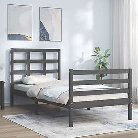 vidaXL Sängynrunko med huvudgavel grå 90x200 cm massivt trä 3193973