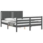 vidaXL Sängynrunko med huvudgavel grå 160x200 cm massivt trä 3194778