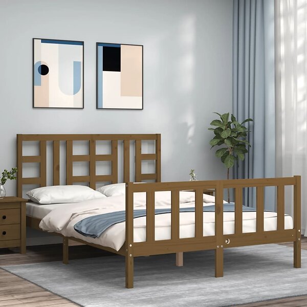 vidaXL Sängynrunko med huvudgavel honungsbrun 140x200 cm massivt trä 3191974