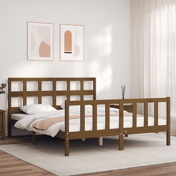 vidaXL Sängynrunko med huvudgavel honungsbrun King Size massivt trä 3193019