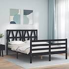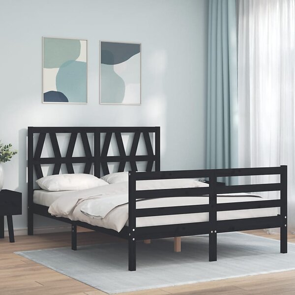 vidaXL Sängynrunko med huvudgavel svart 140x190 cm massivt trä 3194360