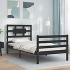 vidaXL Sängynrunko med huvudgavel svart 90x200 cm massivt trä 3194430