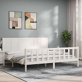 vidaXL Sängynrunko med huvudgavel vit 200x200 cm massivt trä 3192642