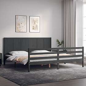vidaXL Sängynrunko med huvudgavel grå 200x200 cm massivt trä 3194528
