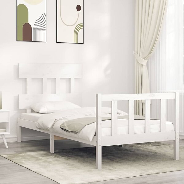 vidaXL Sängynrunko med huvudgavel vit 90x200 cm massivt trä 3193322
