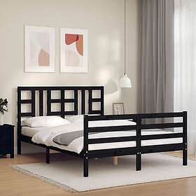 vidaXL Sängynrunko med huvudgavel svart 160x200 cm massiv furu 3193935