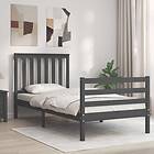 vidaXL Sängynrunko med huvudgavel grå 90x200 cm massivt trä 3194233