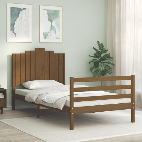 vidaXL Sängynrunko med huvudgavel honungsbrun 100x200 cm massivt trä 3194174