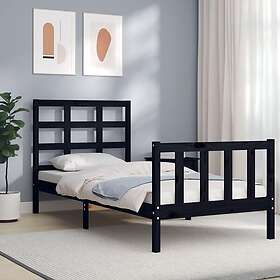vidaXL Sängynrunko med sänggavel svart 90x190 cm massivt trä 3192070