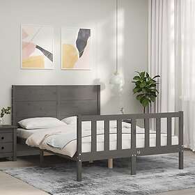 vidaXL Sängynrunko med huvudgavel grå 140x190 cm massivt trä 3192733