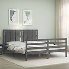 vidaXL Sängynrunko med huvudgavel grå 5FT King Size massivt trä 3194123