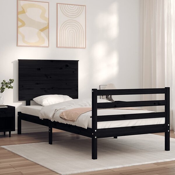 vidaXL Sängynrunko med huvudgavel svart 100x200 cm massivt trä 3195215